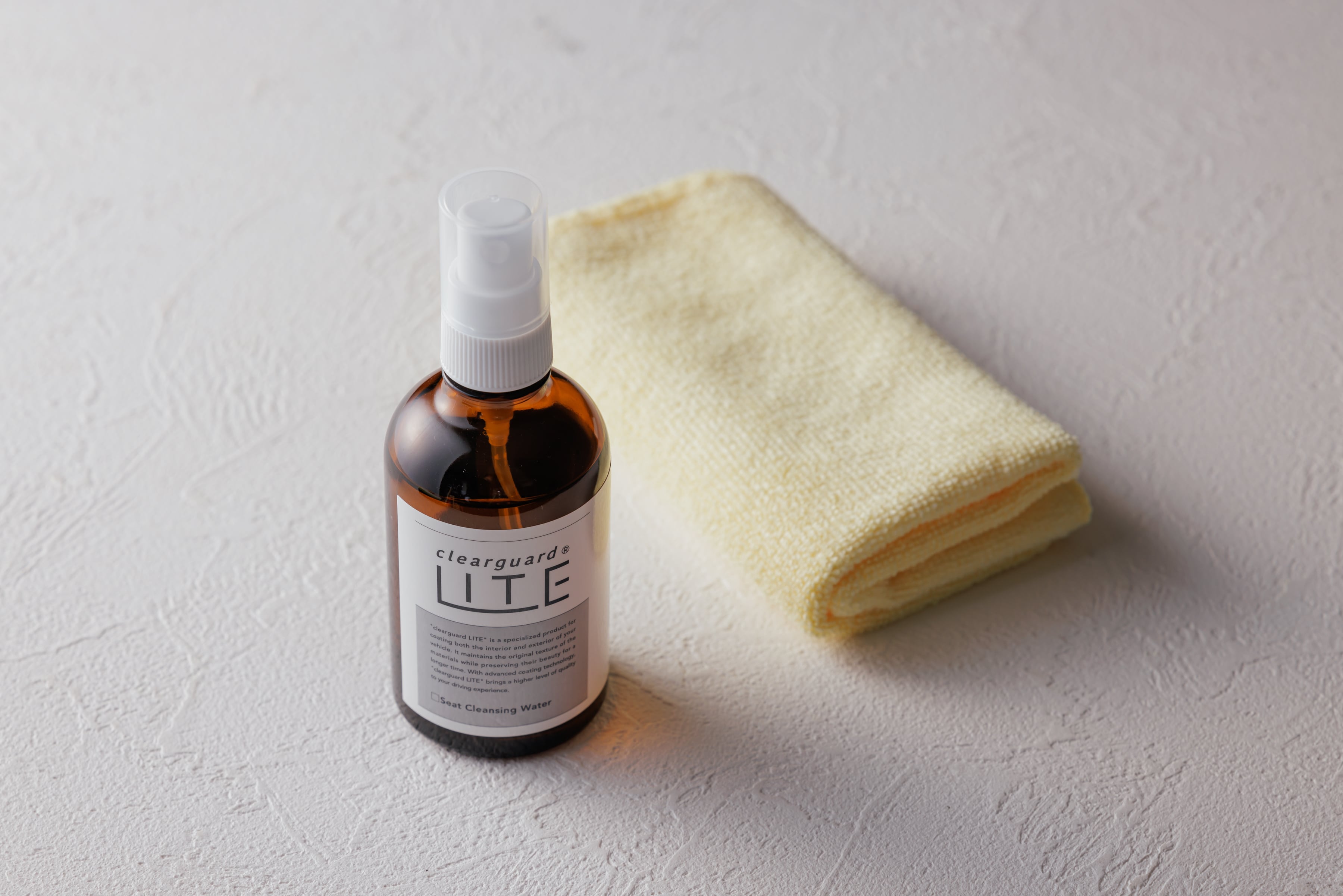 シートクレンジングウォーターで拭き取るだけで、元色の綺麗な色あいに戻し、カビや菌も同時に取り除くので車内環境を清潔にできます。